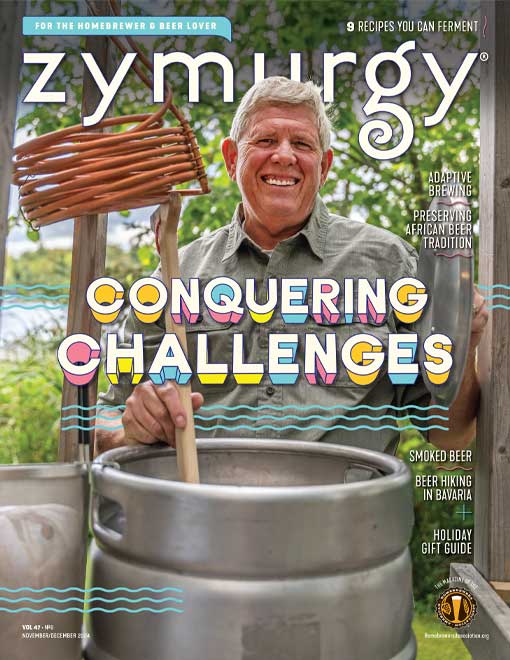The November/December 2024 Zymurgy explores adaptive brewing, ancient beer traditions, smoked beer techniques, Bavarian beer hikes, and hop-free Dutch kuit beer, blending modern innovation with rich brewing history for homebrewers of all backgrounds and interests.